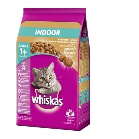 Whiskas Indoor thức ăn khô dành cho mèo trưởng thành từ 1 tuổi trở lên, đặc biệt phù hợp với mèo sống trong nhà. Với công thức cân bằng dinh dưỡng, giúp duy trì sức khỏe, hỗ trợ hệ tiêu hóa và hạn chế búi lông.