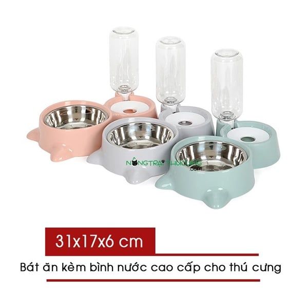 Bát đôi - Bát Ăn - Bình Nước Tự Động (Không kèm bình) - Bát Đôi Tai Mèo
