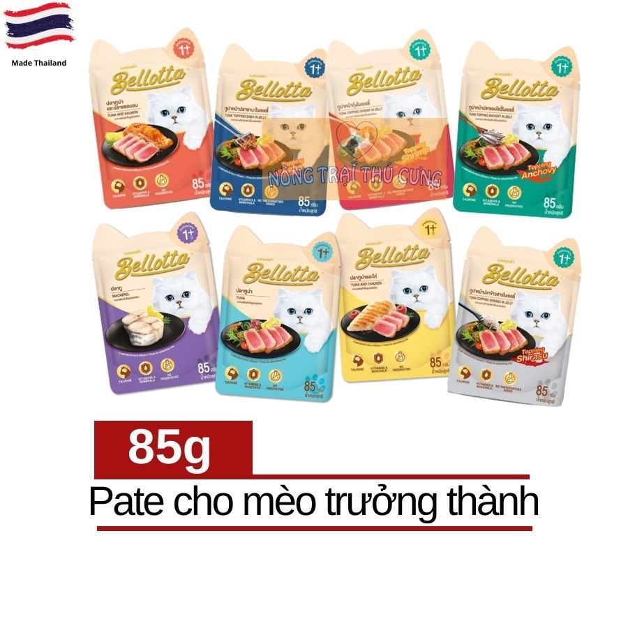 Pate for Cat nhập khẩu Thái Lan Pate mèo Bellotta chứa Axit amin, Taurine cùng các loại Vitamin và Khoáng chất thiết yếu. Sản phẩm tốt cho sự phát triển của mèo, đặc biệt là hỗ trợ chức năng tim và não bộ.