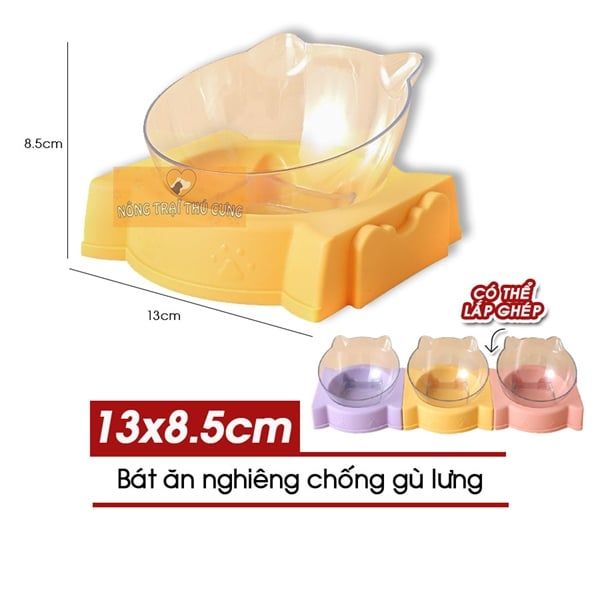 Bát Ăn Nghiêng Chống Gù Lưng (Đế Tháo Rời) Hình Tai Mèo - Nhiều màu