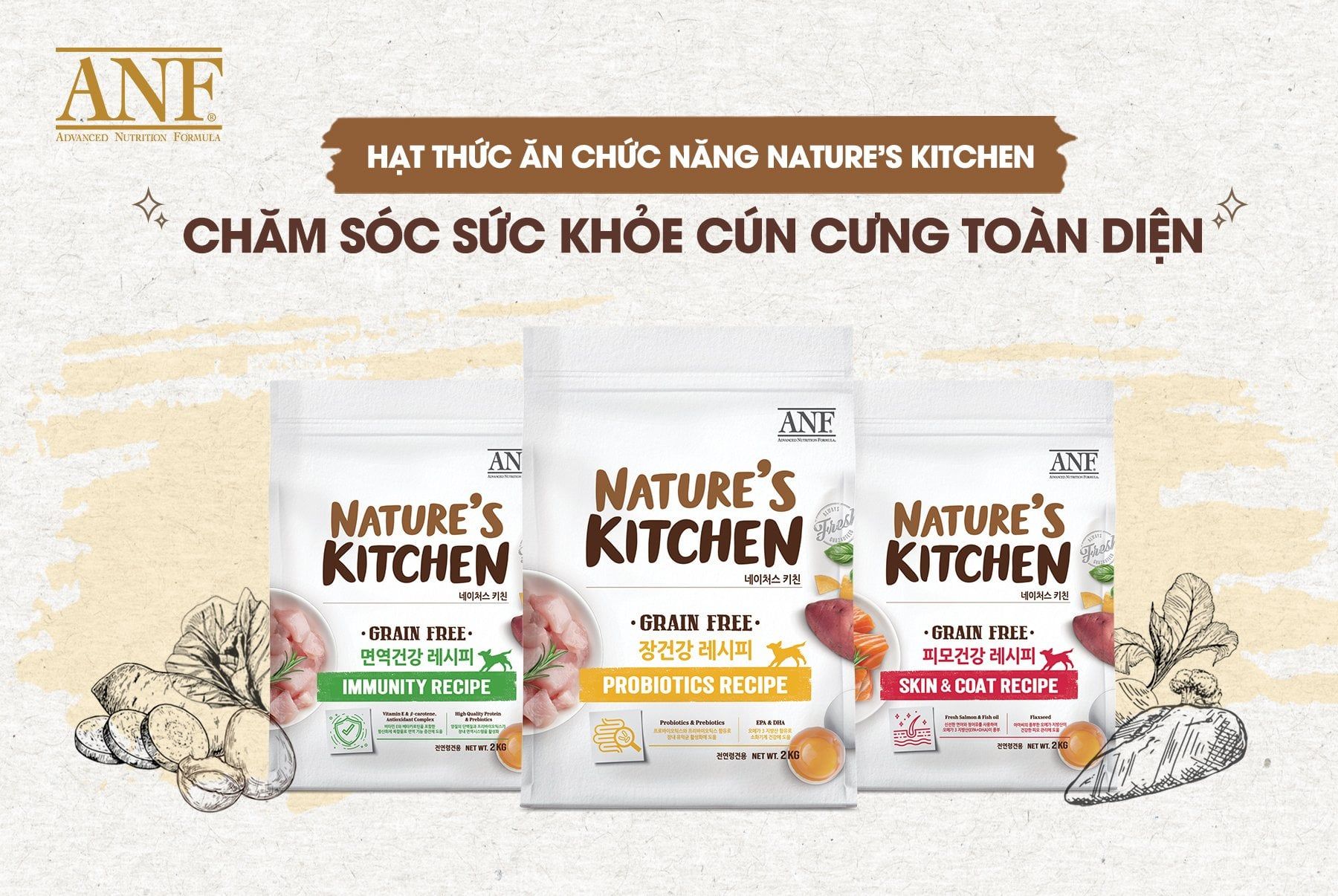 Hạt Cho Chó Hỗ Trợ Sức Khỏe ANF NATURE'S KITCHEN (Grain Free) 2kg