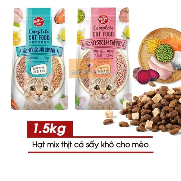Hạt Cho Mèo Wanpy Happy100 Chiết 500g (Có Mix Thịt Sấy) - [Nông Trại Thú Cưng]