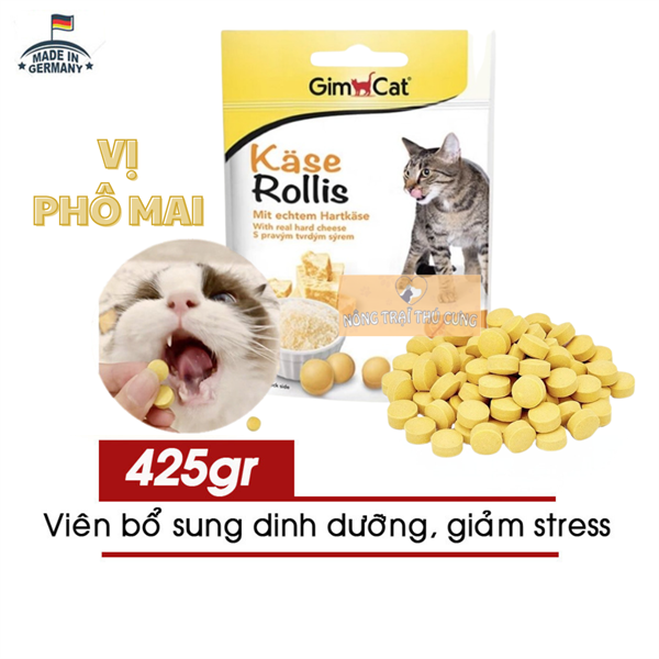 Gimcat Kase Rollis chứa các thành phần dinh dưỡng quan trọng như protein, chất béo và canxi giúp duy trì sức khỏe của mèo. Nó có vị ngon và hấp dẫn để thu hút sự quan tâm của mèo.