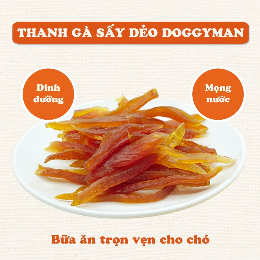 Là một loại thức ăn dành cho chó của hãng thức ăn chó DoggyMan. Nó có nguồn gốc từ thịt gà và được sấy khô cho một hương vị dẻo và sợi nhẹ.